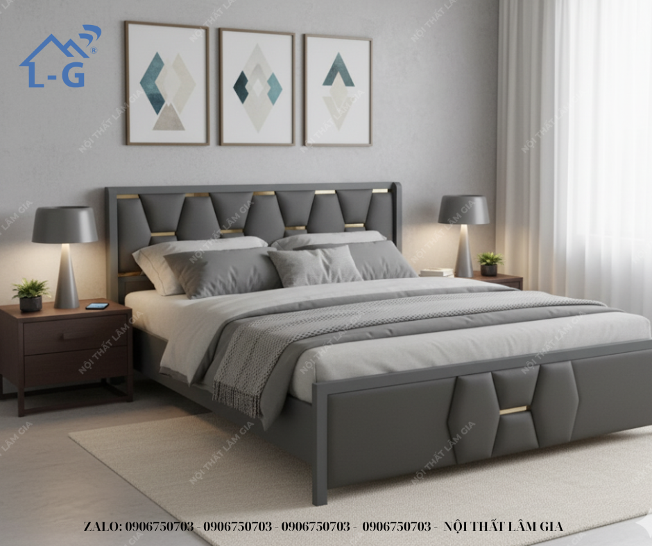 | Chất liệu | Giường Sắt, bọc nệm đầu giường |