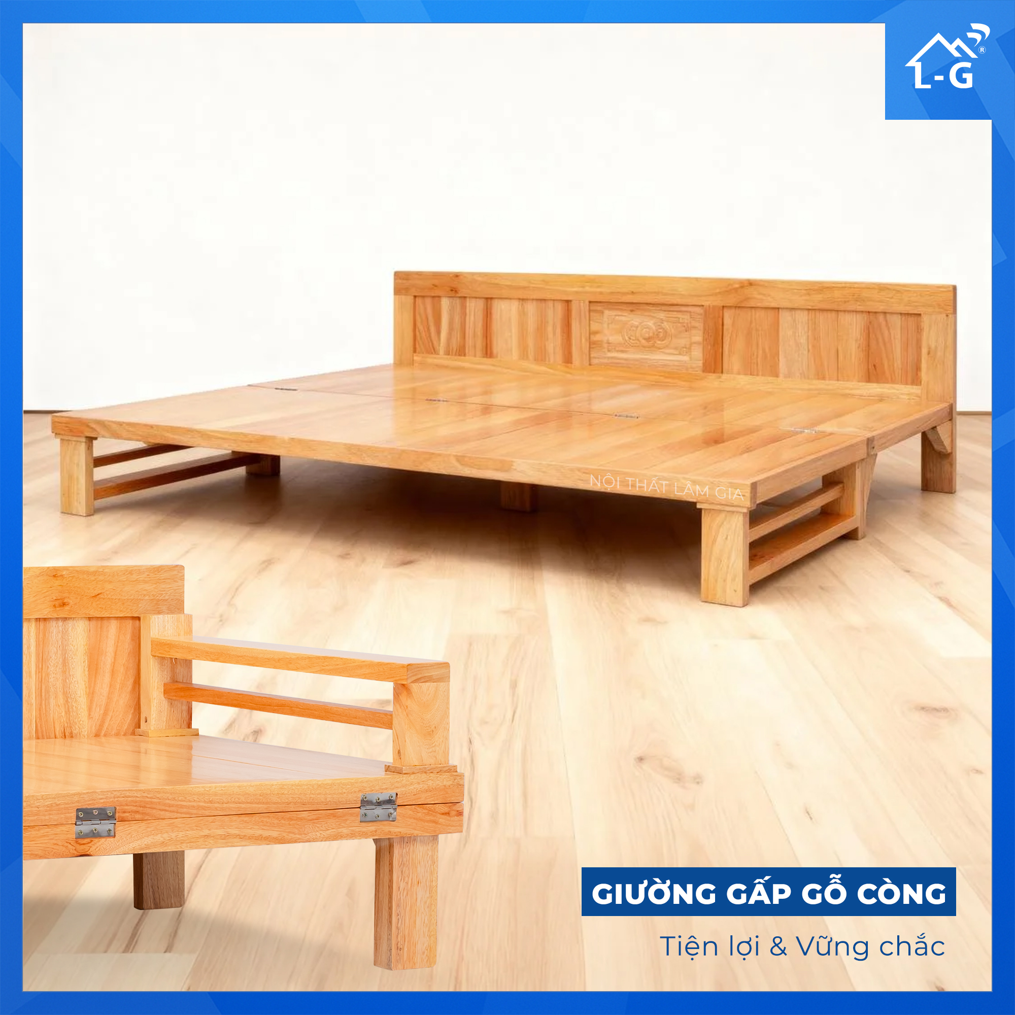 Với chất liệu gỗ còng – một loại gỗ nhẹ nhưng bền, giường gấp gỗ còng dễ dàng di chuyển và không chiếm nhiều diện tích khi gấp lại. Khi mở ra, giường vẫn đủ rộng và thoải mái để sử dụng, mang lại cảm giác dễ chịu cho người nằm.